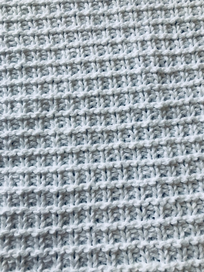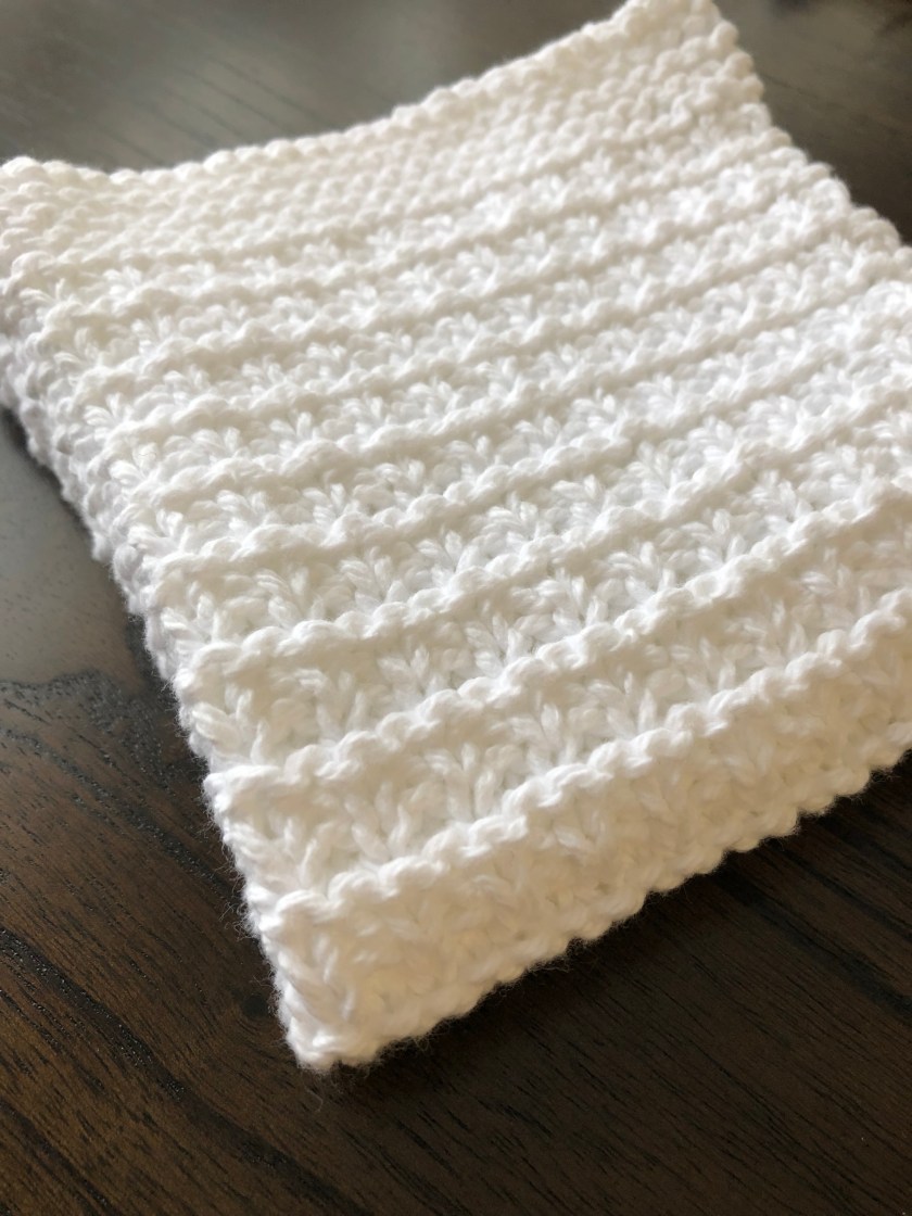 Basketweave pattern: This pattern is a multiple of 5 stitches and 5 rows. To make a wider (or narrower) cloth, use a multiple of 5 stitches. To make the cloth longer, work in multiples of 5 rows.